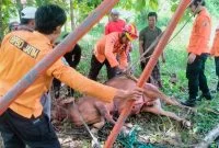 KANALMADURA.COM, SAMPANG — Seekor sapi milik warga di Dusun Larangan, Desa Gulbung, Kecamatan Pengarengan, Kabupaten Sampang, dilaporkan terperosok ke dalam sumur pada Kamis (9/4/2026)