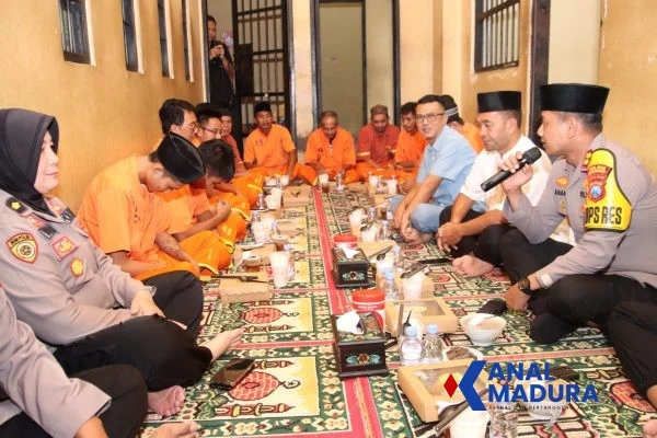 KANALMADURA.COM,SUMENEP – Menjelang waktu berbuka, suasana Rumah Tahanan (Rutan) Polres Sumenep berubah menjadi lebih hangat. Kapolres Sumenep AKBP Anang Hardiyanto, S.I.K, duduk bersama puluhan tahanan untuk berbuka puasa, Rabu, 04 Maret 2026.