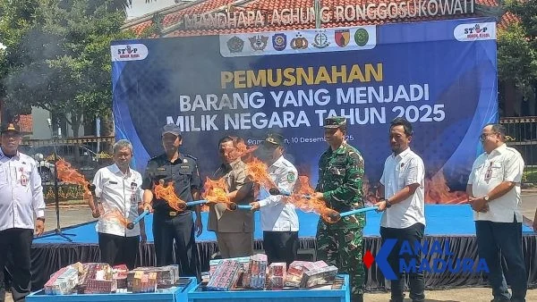 KANALMADURA.COM, PAMEKASAN — Direktorat Jenderal Bea dan Cukai melalui Kantor Pengawasan dan Pelayanan Bea dan Cukai (KPPBC) Tipe Madya Pabean C Madura bersama Pemerintah Kabupaten Pamekasan kembali menunjukkan komitmennya dalam memberantas peredaran barang kena cukai ilegal, khususnya rokok tanpa pita cukai. Hal itu ditandai dengan pelaksanaan pemusnahan Barang Kena Cukai (BKC) ilegal pada Rabu, 10 Desember 2025.