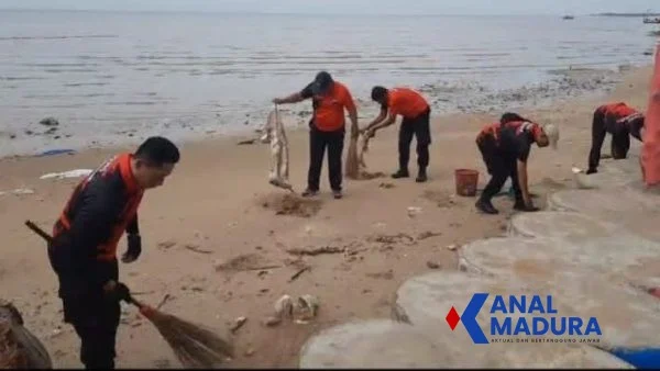 KANALMADURA.COM, PAMEKASAN — Kepala Kepolisian Sektor (Polsek) Pademawu bersama seluruh jajaran menggelar aksi bersih-bersih pesisir di kawasan wisata Pantai Jumiang, Desa Tanjung, Kecamatan Pademawu, Kabupaten Pamekasan, Jumat (13/2/2026) pagi.