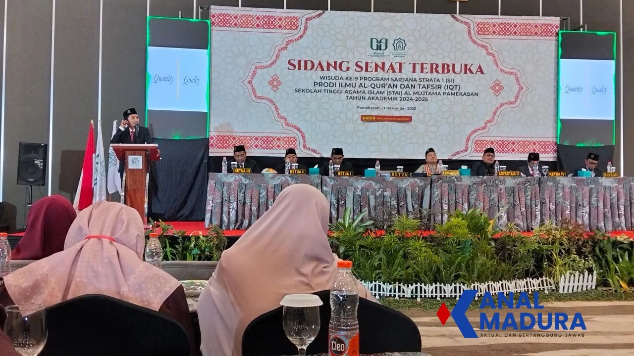 KANALMADURA.COM, PAMEKASAN – Sekolah Tinggi Agama Islam (STAI) Al-Mujtama Pamekasan sukses menggelar Sidang Terbuka Senat dalam rangka Wisuda ke-9 Program Sarjana Strata-1 pada Minggu, 21 Desember 2025 di hotel Azana Pamekasan.